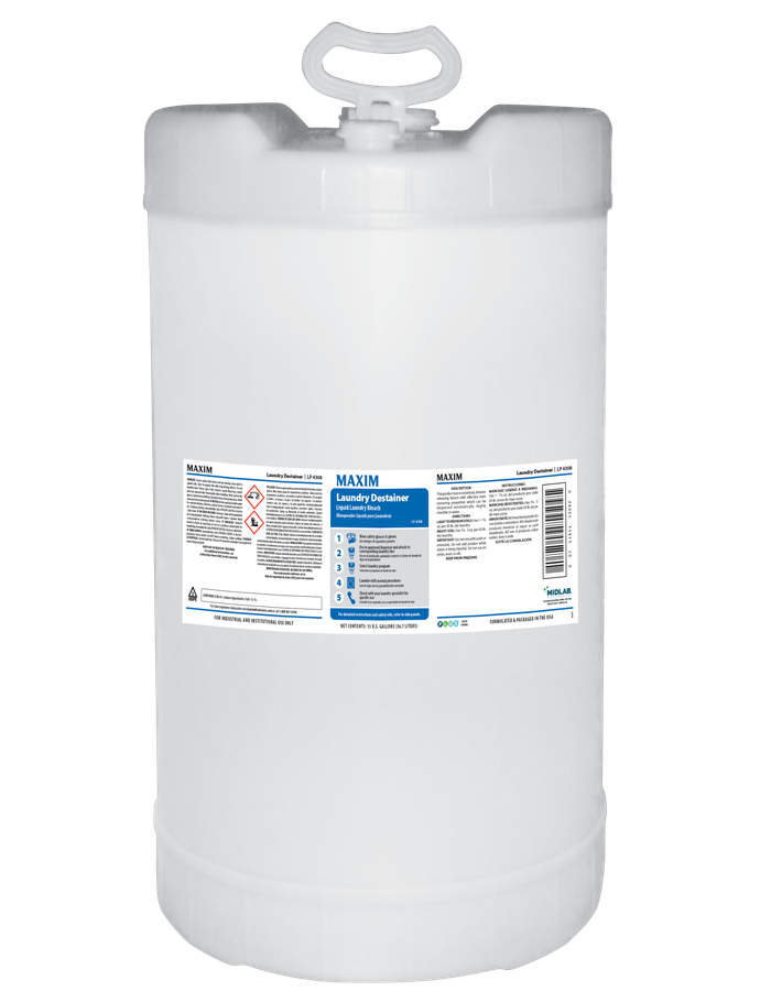 Formulated for commercial laundry operations, this liquid bleach ensures optimum bleaching performance while targeting proteins and starches for thorough, reliable stain removal.
