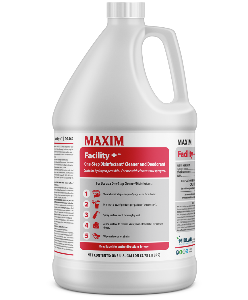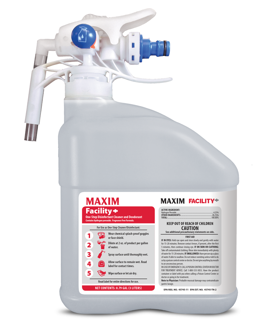 A hydrogen peroxide-based cleaner and disinfectant made for hard, non-porous surfaces, Facility+ is EPA-approved to kill COVID-19, Influenza A & B, RSV, Rhinovirus, Hand Foot & Mouth, and more — delivering fast, effective results without compromising safety.